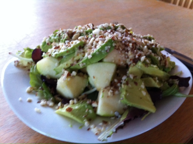 You have probably already realized that I prefer meals that require very little preparation and make a large amount of food (so that I can enjoy leftovers, which Laine calls “planned-overs”). The Apple-Avocado Salad is one of the simplest salads that I’ve ever made. Don’t let the simplicity and minimal number of ingredients fool you though. This salad packs a hefty punch in the taste category. Yet another recipe I have enjoyed more than once since the detox.