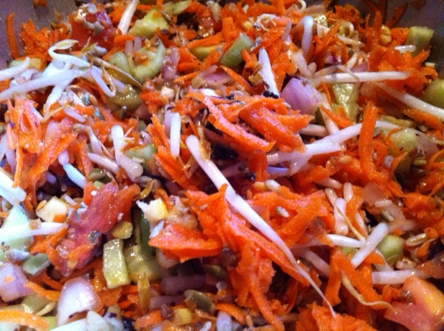 Lunch consisted of the Sea Veg Salad (page 182 of Laine’s cookbook, Real Life Vegan: 10 Weeks of Complete Whole-food Meals with Gluten-free, Vegetarian, and Meat-lover Variations!). Fortunately, the recipe makes quite a large batch. This was critical as I found out that I loved that salad! Furthermore, my eldest son (25 year-old) also dished himself up a few servings. This is one of the recipes that I have made quite frequently since the detox. It has even been a big hit at potlucks. It’s easy to make, results in a large batch, and tastes delicious.
